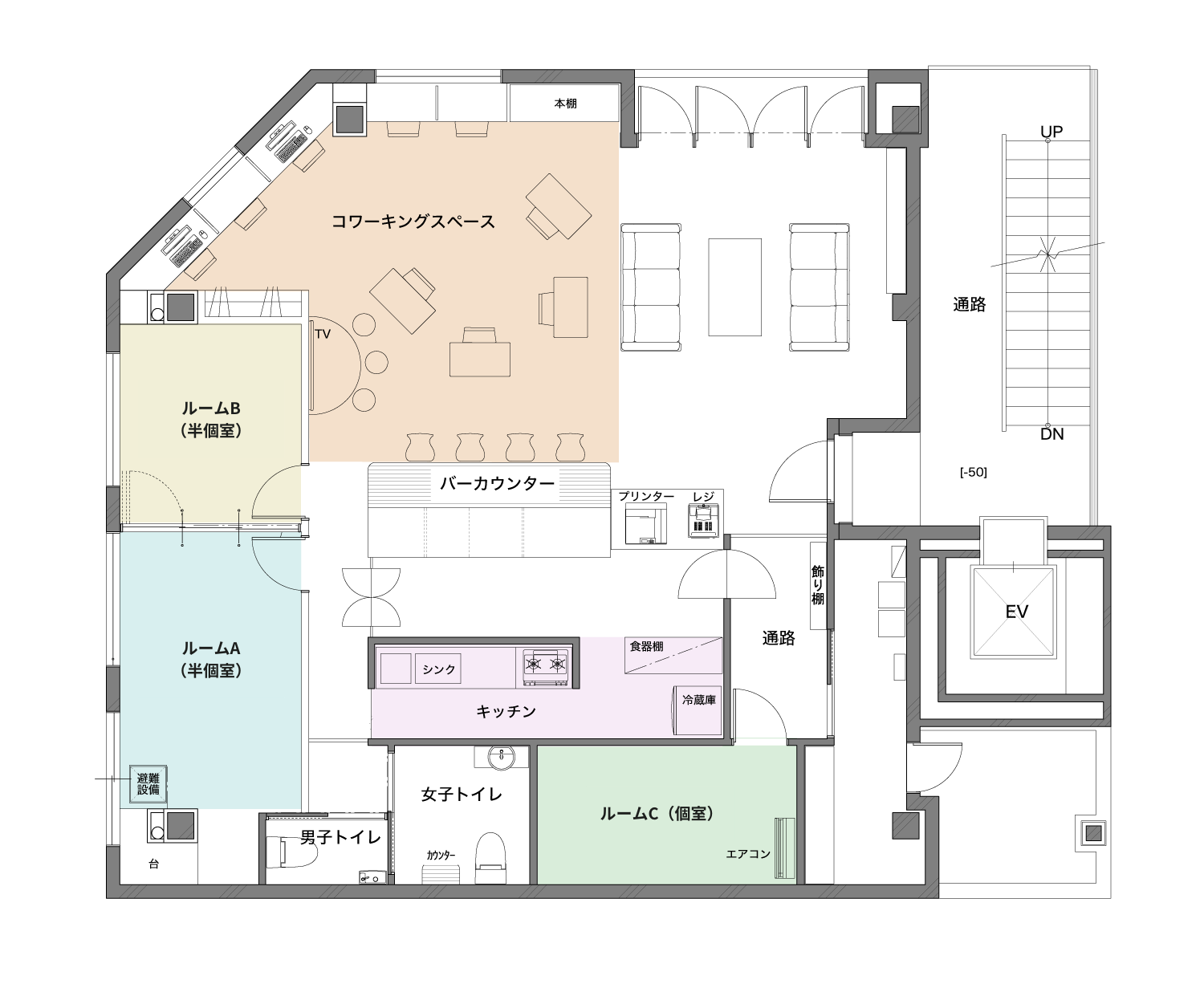 お仕事、打ち合わせ、趣味の集まりなど、幅広い用途に使える多目的レンタルスペースです。